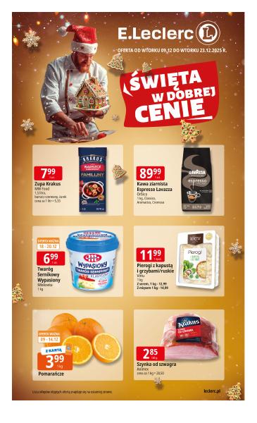 Oferty promocyjne sklepów ukazują się systematycznie raz w tygodniu. Zawartość gazetki promocyjnej E. Leclerc może różnić się pomiędzy poszczególnymi marketami. Jednak gazetka promocyjna E.Leclerc to zawsze wachlarz świetnych produktów w super cenach. Oferta promocyjna zawiera produkty spożywcze, przemysłowe, kosmetyki jak również wyselekcjonowane artykuły na co dzień nie dostępne w stałym asortymencie sklepu. Ponadto promocje obejmują także drobne akcesoria domowe oraz naczynia kuchenne. W gazetce znajdziemy również przepisy na pyszne dania z wykorzystanie produktów dostępnych w sklepach E.Leclerc. Niewątpliwym atutem marketów jest i szeroki asortyment produktów specjalnie wyselekcjonowanych i dobranych dla wszystkich klientów.
