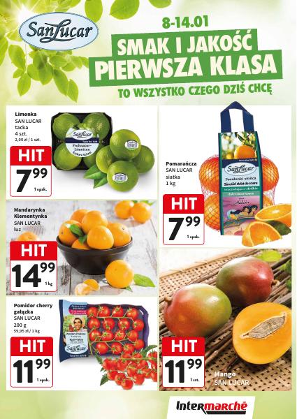Gazetka promocyjna Intermarche przedstawia przede wszystkim świeżą żywność – warzywa, owoce, zioła, pieczywo oraz mięso i wędliny (sklepy posiadają własne wędzarnie i piekarnie). Wynika to z głównego założenia sieci, które zakłada ofertę produktów zawsze tanich i świeżych – głosi to również hasło sklepu. W gazetkach prezentowane są zarówno produkty znanych firm jak i marek własnych Intermarche. Sklep stawia również na BIOżywność i zdrowy tryb życia. Z tego podowu w swoim asortymencie oferuje certyfikowane BIOprodukty. Można je znaleźć na specjalnie oznaczonych półkach oraz w korzystnych cenach w gazetkach promocyjnych supermarketu. Gazetki promocyjne Intermarche często proponują także drobne artykuły gospodarstwa domowego, markowe kosmetyki oraz wiele produktów na wagę. Klientom z ograniczoną liczbą czasu polecamy usługę Drive Intermarche. Pozwala ona na złożenie zamówienia online i odebranie zakupów w wybranym, dowolnym terminie.