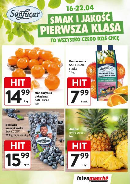 Gazetka promocyjna Intermarche przedstawia przede wszystkim świeżą żywność – warzywa, owoce, zioła, pieczywo oraz mięso i wędliny (sklepy posiadają własne wędzarnie i piekarnie). Wynika to z głównego założenia sieci, które zakłada ofertę produktów zawsze tanich i świeżych – głosi to również hasło sklepu. W gazetkach prezentowane są zarówno produkty znanych firm jak i marek własnych Intermarche. Sklep stawia również na BIOżywność i zdrowy tryb życia. Z tego podowu w swoim asortymencie oferuje certyfikowane BIOprodukty. Można je znaleźć na specjalnie oznaczonych półkach oraz w korzystnych cenach w gazetkach promocyjnych supermarketu. Gazetki promocyjne Intermarche często proponują także drobne artykuły gospodarstwa domowego, markowe kosmetyki oraz wiele produktów na wagę. Klientom z ograniczoną liczbą czasu polecamy usługę Drive Intermarche. Pozwala ona na złożenie zamówienia online i odebranie zakupów w wybranym, dowolnym terminie.