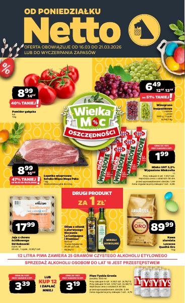 Gazetka promocyjna Netto pojawia się raz w tygodniu. Podzielona jest na dwie części – gazetkę spożywczą oraz przemysłową. Asortyment prezentowany w gazetkach promocyjnych jest bardzo szeroki, jak również oferowany w bardzo korzystnych cenach. W szczególności są to produkty znanych i lubianych marek, meble, artykuły dla majsterkowiczów, dzieci oraz osób starszych. Poza nimi Netto proponuje również marki własne oferujące soki i napoje, kawy i herbaty, słodycze, artykuły mrożone, kosmetyki czy chemię gospodarczą. Sklep proponuje także bogatą ofertę świeżych warzyw i owoców, ziół oraz żywych kwiatów. Gazetka promocyjna Netto to również artykuły biurowe i książki. Gazetka promocyjna oferująca artykuły przemysłowe to „Inspiracje w Netto”. Znajdziemy w niej artykuły dekoracyjne, urządzenia kuchenne, wybrany sprzęt AGD czy odzież i obuwie. Produkty często są markowe i zawsze oferowane w atrakcyjnie niskich cenach.