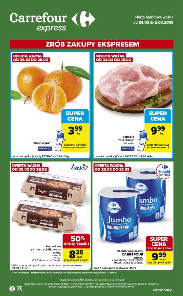 Minimarkety Carrefour Express należące do francuskiej grupy Carrefour posiadają także własną gazetkę promocyjną. Pojawia się ona regularnie raz w tygodniu. Gazetka promocyjna Carrefour Express zawsze oferuje szeroki wachlarz promocji. Można wśród nich znaleźć między innymi takie produkty jak warzywa, owoce, wszelkiego rodzaju artykuły spożywcze, słodycze, alkohole czy podstawową chemię gospodarczą. W sklepach Carrefour Express poza artykułami znanych marek znaleźć można produkty marek własnych Carrefour. Oferowane są one w bardzo korzystnych cenach. Wszystkie gazetki i katalogi promocyjne dostępne są zarówno w wersji papierowej jak i mobilnej w aplikacji „Mój Carrefour” oraz na stronie internetowej sieci Carrefour.