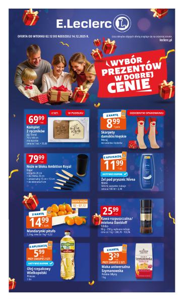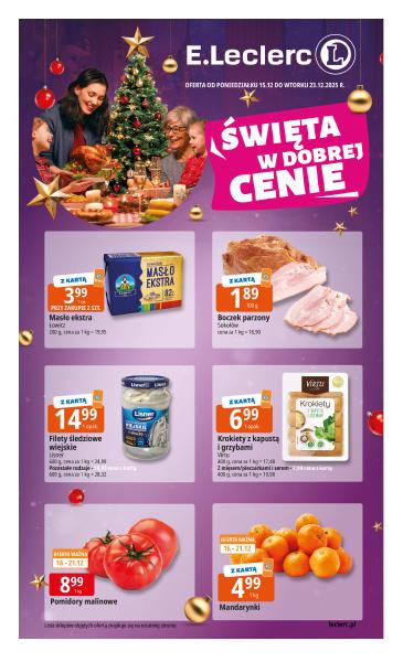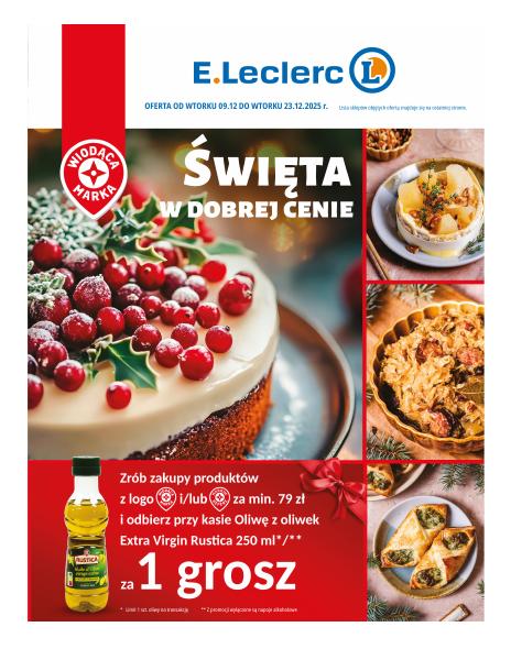 Oferty promocyjne sklepów ukazują się systematycznie raz w tygodniu. Zawartość gazetki promocyjnej E. Leclerc może różnić się pomiędzy poszczególnymi marketami. Jednak gazetka promocyjna E.Leclerc to zawsze wachlarz świetnych produktów w super cenach. Oferta promocyjna zawiera produkty spożywcze, przemysłowe, kosmetyki jak również wyselekcjonowane artykuły na co dzień nie dostępne w stałym asortymencie sklepu. Ponadto promocje obejmują także drobne akcesoria domowe oraz naczynia kuchenne. W gazetce znajdziemy również przepisy na pyszne dania z wykorzystanie produktów dostępnych w sklepach E.Leclerc. Niewątpliwym atutem marketów jest i szeroki asortyment produktów specjalnie wyselekcjonowanych i dobranych dla wszystkich klientów.